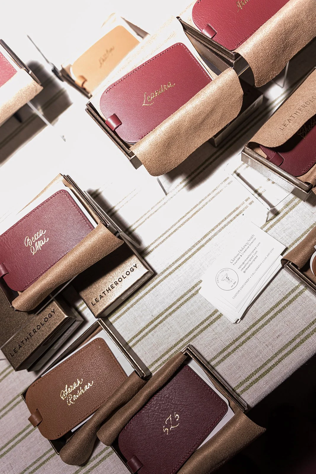 Glass, leather, paper, acrylic, metal, ribbon—you name it. I offer live engraving, foiling, and calligraphy depending on your needs. I’ll help you test materials beforehand so we know exactly what works.